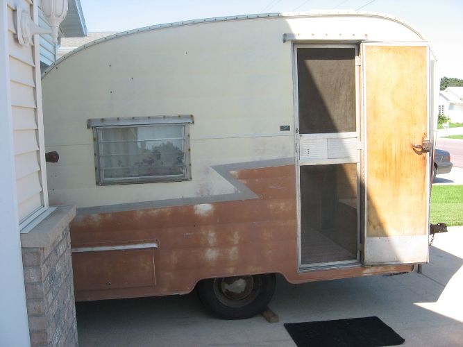 After much research the owner settled on finding a 1964 Shasta Compact with birch interior. They are one of the lightest vintage trailers and that was important for towing with her SUV. They drove from Minnesota all the way to Michigan to pick this baby up! Look at her before…..