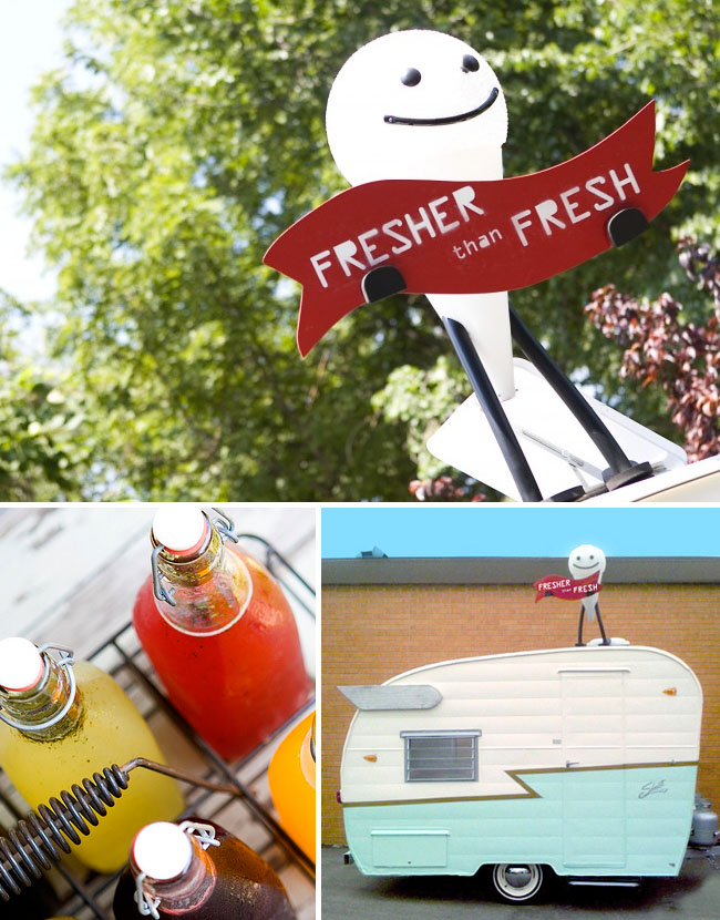 from an beautiful 1957 Shasta.  She offers her customers wonderful flavors like Ginger Rose and watermelon basil… along side her is her mascot Snowie! Looks like they make a perfect team!!